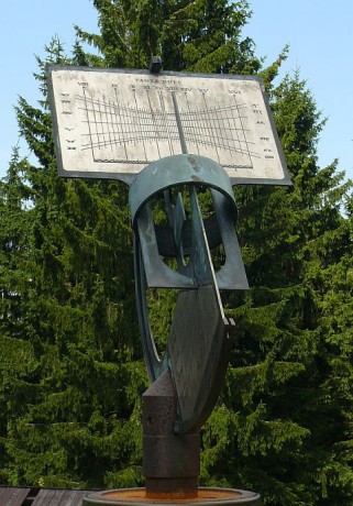 Sluneční hodiny měřící kleťský čas, který se opožďuje oproti středoevropskému času téměř o 3 minuty. Tyto hodiny zde byly instalovány hlavně za účelem zobrazení průmětu pohybu slunce po nebeské dráze během dne a jeho proměn v průběhu roku.