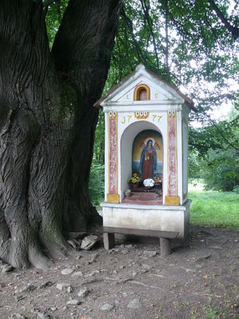 Kaplička u Třísova byla postavena v r.1777 a ve stejném roce prý byla vysazena i vedle stojící mohutná lípa. Od té doby lípa vyrostla do titánské podoby a kapličku téměř vyvrátila. Před pár lety proto kapličku přenesli kousek vedle.