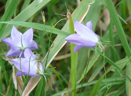 Zvonek okrouhlolistý (Campanula rotundifolia) je na Moravě vzácnější než v Čechách. Proto nás zde docela překvapil. A pak nás zaskočila ještě jedna věc. Všimněte si květu zcela nalevo. Zvonek má květy 5-tičetné, kdežto tento jediný květ byl 6-tičetný!