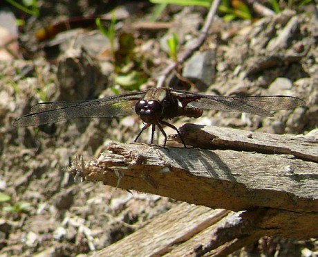 Vážka ploská (Libellula depressa) má široký zadeček, který je u samečka modrý, což byl i tento případ. Blankytná modř ale díky úhlu pohledu nevynikla. Vážka má během svého vývoje velmi zvláštní prelarvární stádium trvající od 3 do 20 sekund.
