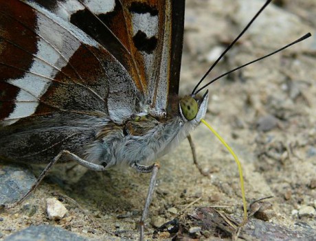 Na závěr setkání s batolcem duhovým (Apatura iris) jsme nafotili jeden jeho detail se sosákem. Pak si ho Ivča chtěla nechat přelézt na ruku, to ale už batolec nevydržel a frnknul nám.