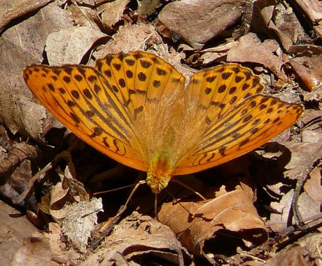 Podle voničkových pruhů jsme zachytili samečka perleťovce stříbropáska (Argynnis paphia). Samci hledají samice tzv. patrolováním. Když se samice objeví, pronásleduje ji. Kopulace pak probíhá na keřích a stromech.