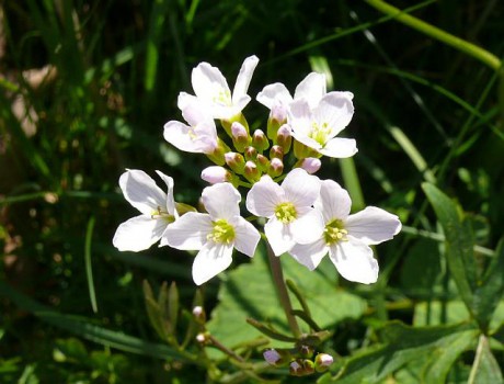 Řeřišnice luční (Cardamine pratensis) opět rostla na břehu Kyjovky. Nebyla zde ale v takovém množství jako druh řeřišnice na předchozím snímku. Rovněž obsahuje vitamín C, ale na rozdíl od předchozího druhu má korunní lístky narůžovělé.