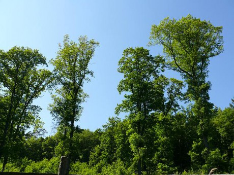 Před námi se zjevila mýtina s lesní školkou a těmito stromy. Ty zde jsou ponechány úmyslně, a to z důvodu systému založeném na pěstování tzv. výstavků, kdy se ponechá několik vitálních stromů se zdravými kmeny, které zajistí kvalitu budoucího potomstva.