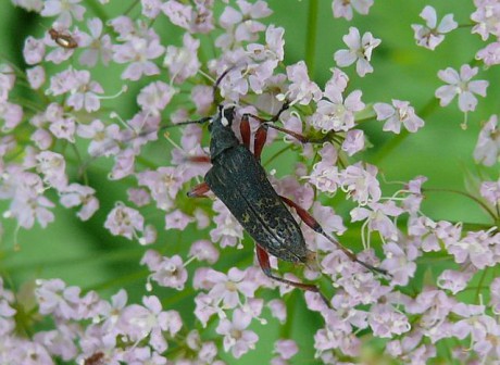 Tesařík Evodinus clathratus nemá české druhové jméno. Vyskytuje se u nás v pohraničních horách. Dorůstá do velikosti 1cm. Barevně je velmi variabilní, odlišuje se forma černé krovky+světlá kresba (viz. foto) a světlé krovky+černá kresba.