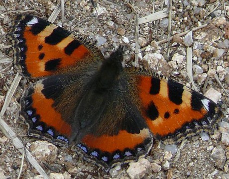 Babočka kopřivová (Aglais urticae) u nás létá od jara až do podzimu. V tomto případě nám u Vrbatovy boudy ideálně zapózovala.