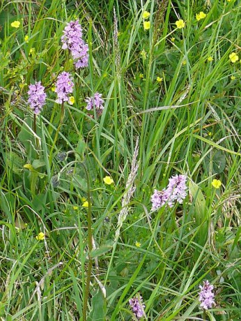 I v příkopu u silničky bylo prstnatců Fuchsových pravých (Dactylorhiza fuchsii subsp. fuchsii) skutečně hodně. Jenom na tomto snímku je hned 9 jedinců.