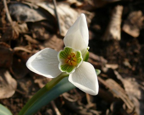 Sněženka podsněžník (Galanthus nivalis) má 3 vnější okvětní lístky dlouhé 1,5-2cm, ty jsou bílé a mají kopinatý tvar, 3 vnitřní okvětní lístky, které jsou poloviční, také bílé, ale vykrojené se zelenou skvrnou. Tyčinek má 6, prašníky jsou žluté.
