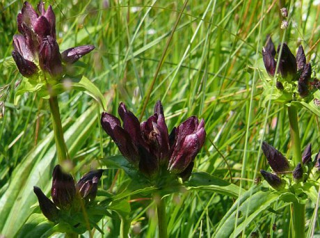 Že je hořec panonský (Gentiana pannonica) na Šumavě silně ohroženým druhem způsobil člověk, který sbíral jeho kořen pro výrobu likérů nebo pro využití v léčitelství. Tedy dost podobný osud jako prha arnica, ale ta roste přirozeně i v jiných horách.
