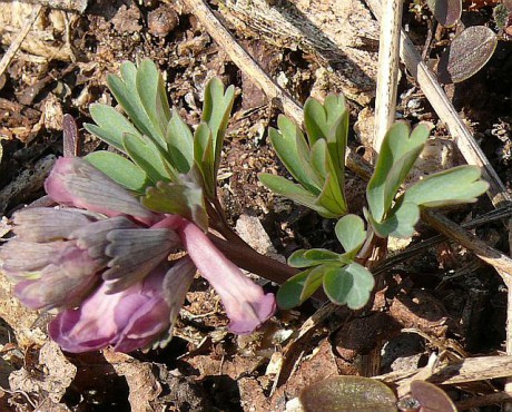 A zde jsme našli dalšího posla jara, dymnivku dutou (Corydalis cava). Zde je ještě v počátcích a do plné krásy ji něco chybí. Jako většina jarních rostlin i tato bsahuje alkaloidy a je mírně jedovatá. Z dymnivky duté se dá prý vyrobit silný opiát.