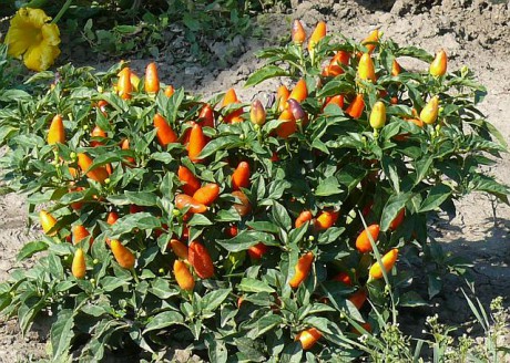 Přímo u cesty rostly i chilli papričky (nikde žádný plot a nic nechybí...) . Alespoň se domníváme, že se jedná o tyto pálivé papričky, které v menším množství příznivě působí na zažívání a sliznice, a proto jsou pro náš organizmus vítanější než pepř.