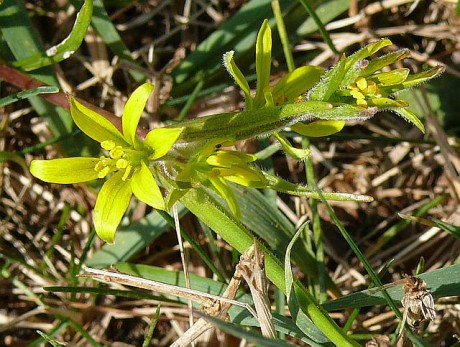 Tento křivatec, který rostl na mezi, nás docela zmátl. Měl chlupaté květní stopky a špičaté okvětní lístky, což by znamenalo, že se může jednat o křivatec rolní (Gagea villosa), který je silně ohrožený druh naší flóry. Kdo má jiný názor, ozvěte se.