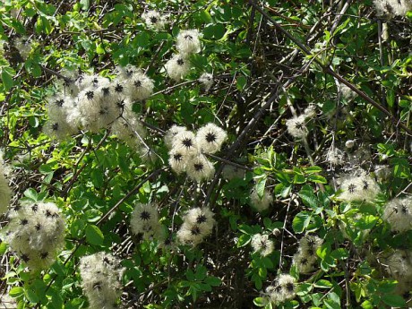 Na jaře lze také potkat loňské odvkvetlé květy plaménku plotního (Clematis vitalba). Jedná se o naši jedovatou liánu, které se dobře rozšiřuje větrem. U nás je původní pouze na jižní Moravě.
