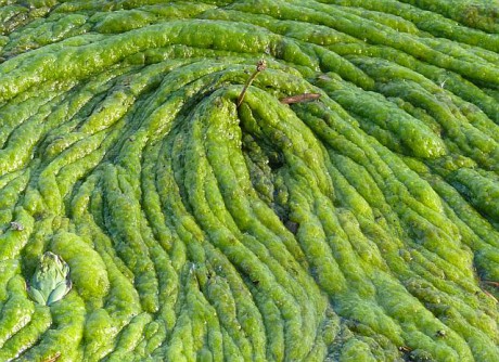Na jedné ze sádek nedaleko Hraničního zámečku jsme objevili hustý porost sinic. Až doma jsme zjistili, že na snímku se v levém dolním rohu nachází rosnička.