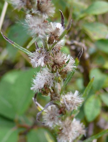Na mýtině u lesní cesty byly desítky exemplářů odkvetlé protěže lesní (Gnaphalium sylvaticum). Plody (nažky) napovídají, proč protěž patří mezi hvězdnicovité.