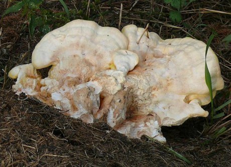 Domníváme se, že jsme nafotili houbu se neobvyklým názvem krásnoporka mlynářka (Albatrellus ovinus). Protože její některé části začínaly žloutnout, bude se jednat o mlynářku (druh krásnoporka žemlička nežloutne). Využívá se pro výrobu houbového prášku.
