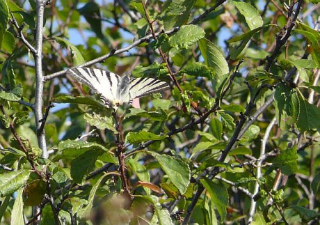Otakárek ovocný (Iphiclides podarilius) patří mezi naše největší denní motýly. Rozšířen je na suchých stanovištích, přičemž s oblibou létá nad vrcholy kopců. V tomto případě se před námi schovával do korun stromů a keřů.