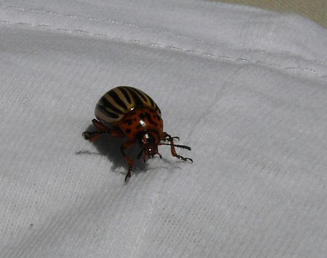 Mandelinka bramborová (Leptinotarsa decemlineata) je škůdce brambor napadající i rajčata, papriky... Do Evropy dorazila ze Severní Ameriky a u nás byla v 50. letech 20. stol. považována za imperialistického brouka vysazeného diverzanty ze západu. :-))