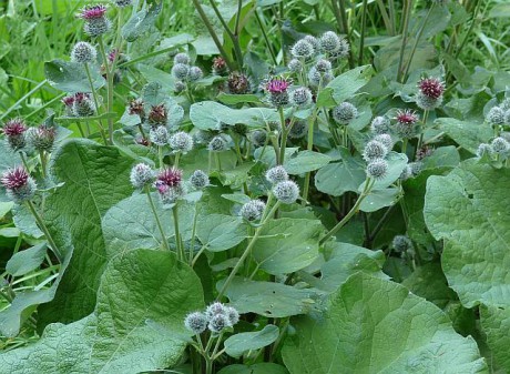 Lopuch plstnatý (Arctium tomentosum) má své druhové jméno díky plstnatým úborům, jakoby pokrytým pavučinovým vláknem. Lidově se tomuto lopuchu říká kudlibabka. Jedná se o léčivku příznivě působící při poruchách trávicího traktu a posilující organizmus.