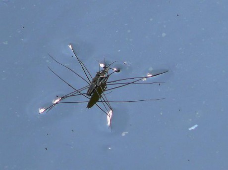 Bruslařka obecná (Gerris lacustris), v tomto případě páreček, je docela hojným druhem vodní ploštice. Na hladině vody se udrží díky povrchovému napětí. Pohybuje se zásluhou brv na povrchu nožních článků, a to trhavými a velmi rychlými pohyby po hladině.
