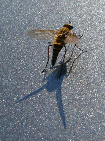 Ostrožka Thereva nobilitata má bohatě chlupatý povrch těla, který ji ochraňuje, aby se nestala sama kořistí jiných predátorů. Dospělce lze vidět od května do konce léta, ale nejvíce na konci srpna, kdy dochází k jejich páření. Jejich larvy jsou všežravé.