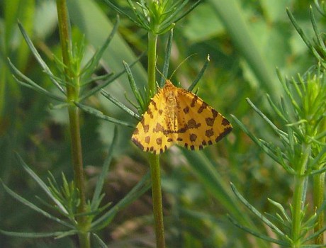 Zejkovec hluchavkový (Pseudopanthera macularia) kolem nás proletěl, když jsme procházeli Oulehlu II. Byť se jedná o nevelkého píďalkovitého motýla, nelze ho přehlédnout. Vysluněné stráně Oulehly má zjevně v oblibě.