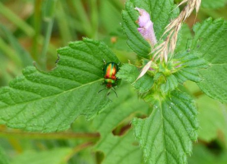 Mandelinka nádherná (Chrysolina fastuosa) má v oblibě zejména hluchavkovité rostliny. Její tělo je dlouhé pouze do 1cm. Pod slunečními paprsky se jí krásně lesknou krovky do zlato-červena nebo do zelena.