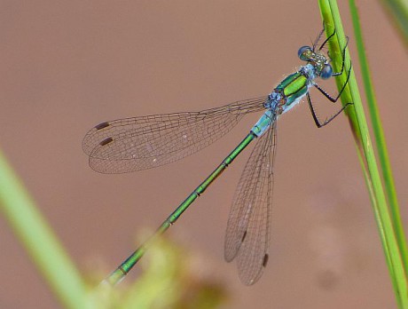 Šídlatka páskovaná (Lestes sponsa) je zeleně zbarvená s kovovým leskem. Vyhledává biotopy se stojatou povrchovou vodou. Patří mezi naše pozdní druhy vážek a v přírodě se s ní můžeme setkat od června do října.