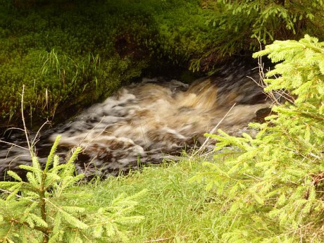 Jelení potok měl hnědou barvu připomínající čaj. Hnědá barva vody je způsobena obsahem huminových kyselin vyplavovaných z rašelin a smrkových lesů a také vyšším zastoupením hnědých řas.
