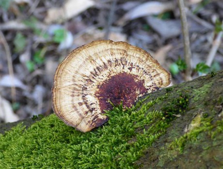 Opět si nejsme jistí, ale zřejmě se bude jednat o síťkovec načervenalý (Daedaleopsis confragosa). Ještě nás zaujaly jeho rourky na spodní straně, které působily lupenitým dojmem. Skutečně se jednalo o rourky, i když první dojem vypadal jinak.