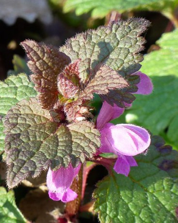 Hluchavka nachová (Lamium purpureum) kvete od počátku jara až do podzimu. V léčitelství se využívá stejně jako hluchavka bílá (léčba zažívacího traktu, gynekologické problémy apod.), ale někteří bylinkáři tvrdí, že nachová je lepší. Krásně voní.