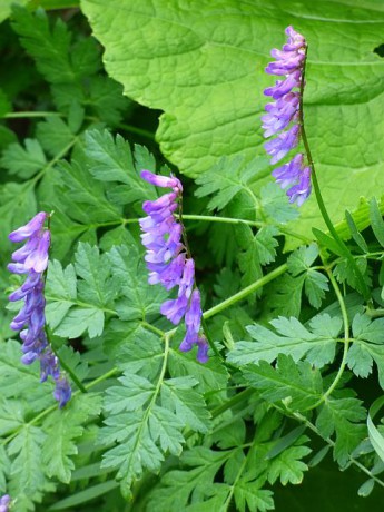 Vikev ptačí (Vicia cracca) je hojná rostlina rostoucí po celém území a bývá i na horách. Její druhové jméno svědčí o tom, že je pro lidi nepoživatelná a je ponechána k dispozici ptákům. Opět nám připomínala teplomilnou vikev tenkolistou.
