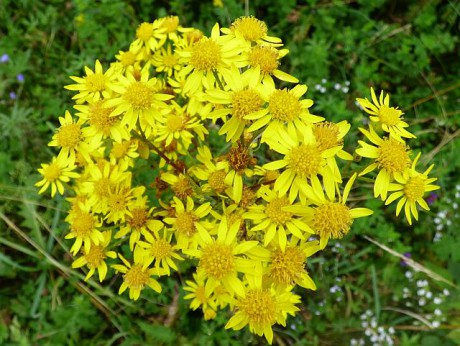 Starček přímětník (Senecio jacobaea) způsobuje nekrosu (cirrhosu) jater a poškozuje centrální nervový systém. Je u této rostliny i podezření z karcinogenního působení. Otrava se obvykle vyvíjí pomalu, projevuje se týdny.