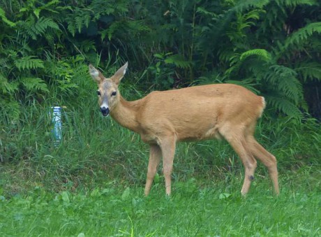 ... a zde je už matka srna. Po narození mládě zůstane schované a matka jej chodí několikrát denně krmit. Tento stav trvá několik dní. V případě, že samice uvidí v blízkosti mláděte člověka nebo některého dravce, je velké riziko, že mládě opustí.