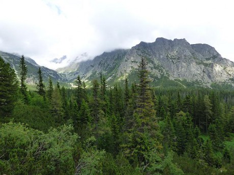 Zpětný pohled na Zlomiskovou dolinu lemovanou zleva Popradským hřebenem a zprava Ostrvou, Tupou a Končistou. Zlomiskovou dolinou stéká Ľadový (někde nazýván Lední) potok napájející Popradské pleso.