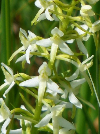 Vnější prostřední a 2 vnitřní okvětní lístky vemeníku vytváří neúplnou přilbu. Vnější okvětní lístky jsou kopinatě vejčité. Celokrajný pysk s ostruhou je jazykovitý a má nejdříve bílou barvu, která přechází do zeleného nádechu.