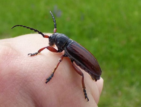 Kozlíček hnědý (Dorcadion fulvum) dorůstá velikosti kolem 1,5 - 1,8 cm. Hlavu a hruď má černou, tykadla jsou rovněž černá, ale jejich první článek je hnědý, jak je vidět na snímku.