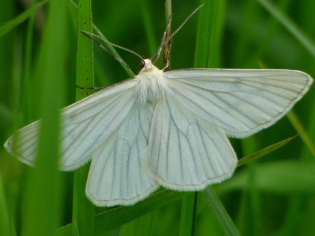 Bělokřídlec luční (Siona lineata) se lidem plete s běláskem. Jedná se ale o většího píďalkovitého motýla (rozpětí křídel cca 4 cm) s typickým houpavým letem. Svrchní bílá křídla mají slabé, šedé žilky. Na spodní straně křídel jsou žilky zřetelnější.