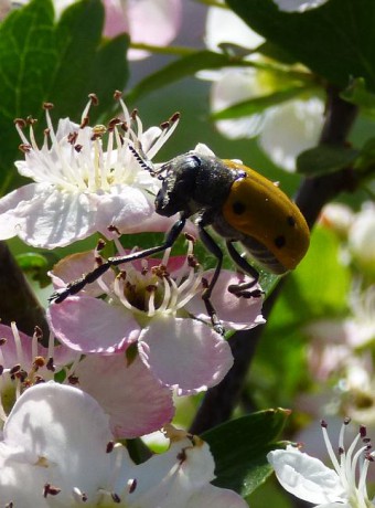 Huňáč šestitečký (Lachnaia sexpunctata) je mandelinkovitý brouk žijící na teplých křovinatých stráních a okraji lesa. Huňáč se živí pletivy dubu nebo lísky. V Červeném seznamu je řazen mezi kriticky ohrožené druhy.