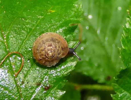 Vlahovka narudlá (Monachoides incarnatus) má pysk u ústí ulity typicky narůžovělý. Tělo plže je šedočerně tmavé. Ulita je zrnitá s tmavými skvrnami. Nejčastěji se objevuje v listnatých lesích, často v okolí potoků a vlhkých skal, což byl i tento případ.
