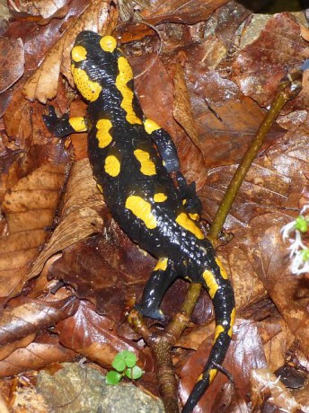 Mlok skvrnitý (Salamandra salamandra) je náš největší ocasatý obojživelník. Jeho základní zbarvení je černé a na bocích a hřbetě (někdy i na hrdle, hrudi nebo břiše) má výrazné žluté skvrny. Odstín skvrn, tvar i velikost se mění s jeho věkem.