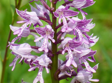 Náš první vstavač vojenský (Orchis militaris), který jsme ten den potkali. Jedná se o silně ohroženou orchidej, která v Čechách roste velmi vzácně, na Moravě je častější. Květy svými tvary připomínají postavu rozkročeného vojáka s přilbou.