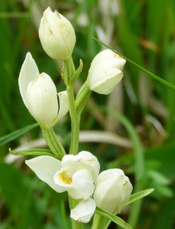 Okrotice bílá (Cephalanthera damasonium) je lesní orchidejí, která obsahuje chlorofyl nezbytný k fotosyntéze. Nicméně se neobejde bez symbiotických hub v blízkosti svých kořenů, které ji pomáhají doplňovat potřebné uhlíkaté látky.