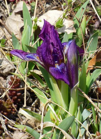 Kosatec nízký (Iris pumila) má své latinské rodové pojmenování odvozené od řecké bohyně duhy Iris pro svou pestrobarevnost květů. Iris byla v mytologii poslem bohů, a to zejména nejvyššího boha Dia a jeho manželky Héry.